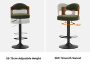 Oikiture 2x Bar Stools Kitchen Bar Chairs Gas Lift Stools Green Boucle