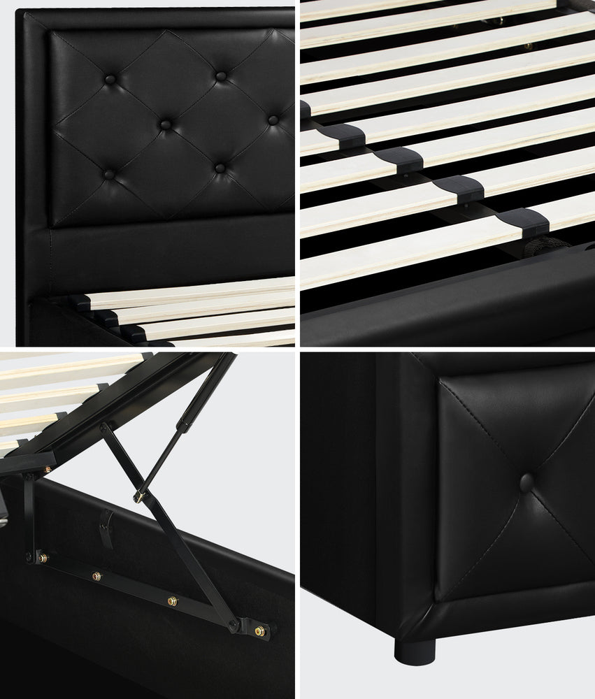 Oikiture King Bed Frame with Storage Space Gas Lift Black
