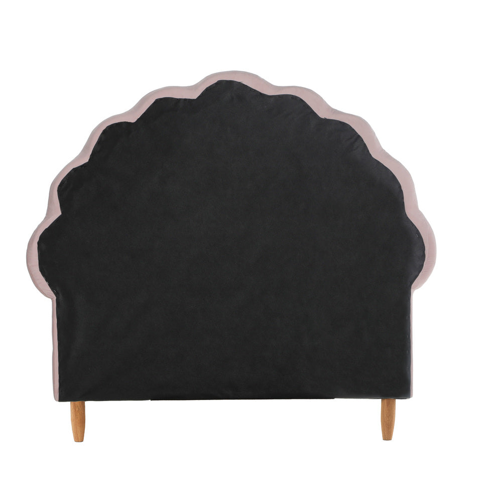 Oikiture Single Bed Frame Scallop-Shape Bedhead Pink Velvet