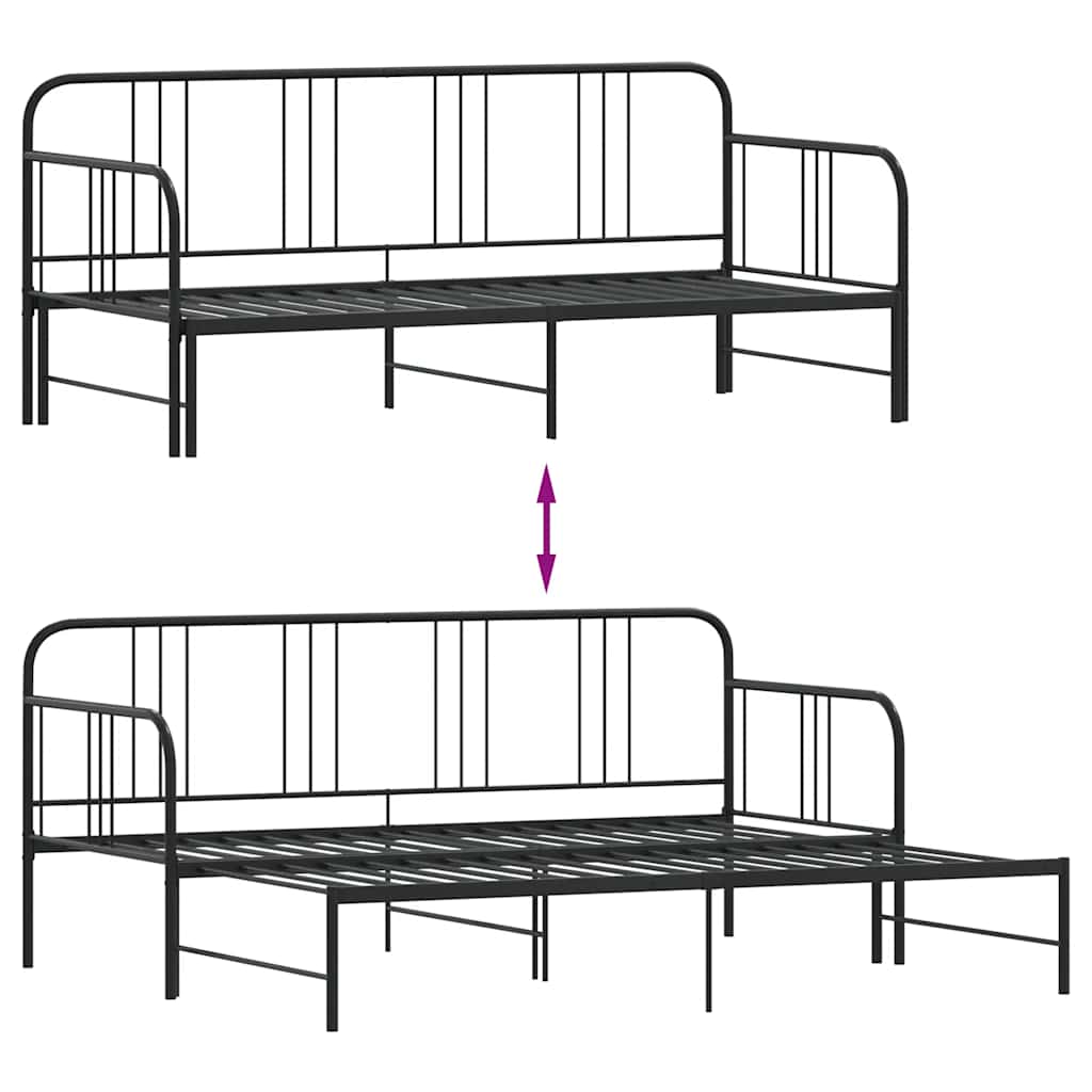 This 2-in-1 daybed with trundle, serving as both a sofa and bed, makes a practical and eye-catching addition to your living room or bedroom. Stable and long-lasting frame: The powder-coated metal frame is strong, stable, durable, and resistant to corrosion and harsh weather, ensuring long-lasting performance.Versatile daybed: The sofa bed functions as a sofa during the day and easily converts into a double bed at night by pulling out the trundle, providing a convenient solution for hosting guests and maximising space.Slatted base for optimal support: The bed frame is equipped with a slatted base for support and breathability for your mattress.Extra storage space: For convenience, the bed has an extra space underneath to keep your storage boxes out of sight. Good to know:A mattress is not included with this bed. We do offer a various selection of mattresses. You can check our shop for a matching mattress.