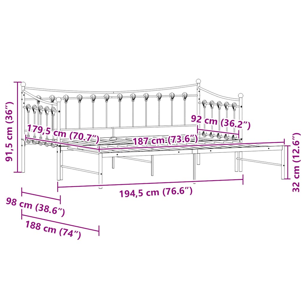 This 2-in-1 daybed with trundle, serving as both a sofa and bed, makes a practical and eye-catching addition to your living room or bedroom. Stable and long-lasting frame: The powder-coated metal frame is strong, stable, durable, and resistant to corrosion and harsh weather, ensuring long-lasting performance.Versatile daybed: The sofa bed functions as a sofa during the day and easily converts into a double bed at night by pulling out the trundle, providing a convenient solution for hosting guests and maximising space.Slatted base for optimal support: The bed frame is equipped with a slatted base for support and breathability for your mattress.Extra storage space: For convenience, the bed has an extra space underneath to keep your storage boxes out of sight. Good to know:A mattress is not included with this bed. We do offer a various selection of mattresses. You can check our shop for a matching mattress.