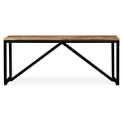 This industrial-style wooden bench exudes a vintage charm and will make a timeless addition to your home. The hall bench is made of solid mango wood which is solid, durable and beautiful. Every step of the process is carried out with the greatest care, be it sanding or lacquering. The beautiful wood grains make every piece of furniture unique and slightly different from the next. The strong steel legs add to the bench's sturdiness. Assembly is easy. Important note: Grains vary from piece to piece, making each of our benches unique. The delivery is random, ensuring the exclusivity and individuality of your product.