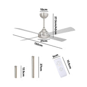 Vevare 52'' Ceiling Fan AC Remote Control Timer 4 Blades Silver