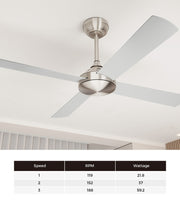 Operational-wise, the ceiling is powered by an efficient and quiet 70W AC motor with four 52” (132cm) plywood blades rotating at a choice of up to 3 speed levels. All these and more conveniently controlled by the handy remote control by your side as you work, rest, relax and chill under the fan’s pleasant drafts. Better still, you can set the timer for up to 8 hours so that it can do its fanning at your preferred times of the day or night.