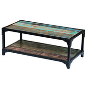 This vintage-style wooden coffee table, made of solid reclaimed wood, will make a timeless addition to your home. Thanks to the strong steel frame, the coffee table is very steady and durable. The tabletop provides a stable and secure surface on which you can place your drinks, a fruit basket or vase or other decorative items. The shelf on the bottom provides ample space for storing multimedia appliances, books, magazines, and other items you want to keep within reach. The coffee table can also be used as a couch table, living room table, side table, etc. The coffee table is made of recycled wood, which means every piece of furniture is unique and slightly different from the next. Furniture made of reclaimed wood has the characteristics of different woods, like teakwood, acacia, mango wood, saal wood, etc. Reclaimed wood is solid, stable, durable, and beautiful. Signs of wear and visible grain structure give each piece its own history and unique look. The table is fully handmade, and the craftsmanship adds to its spectacular retro style. Every step of the process is carried out with the greatest care, be it recombining, polishing, painting or waxing. Important note: Colours vary from piece to piece, making each of our coffee tables unique. The delivery is random, ensuring the exclusivity and individuality of your product.