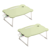 2X Green Portable Bed Table 60x48x28cm Metal Frame Foldable Drawer Cup Holder