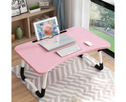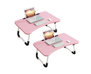 2X Pink Foldable Bed Table Mdf Aluminum Frame 60x40x28cm Laptop Stand Card Slot