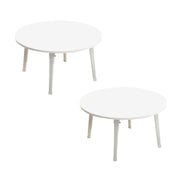 2X White Space Saving Round Floor Table Particleboard Metal 60cm 35cm