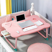 Portable Folding Bed Table 60x48x28cm Pink Particleboard Mini Drawer Cup Holder