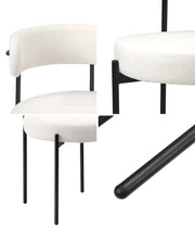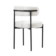 With its luxurious Boucle upholstery generously padded with high-density foam for the seat and backrest and, you're sitting on prime comfort. The contoured backrest also provides ample support for you to sit back and enjoy the seat. Soft and satisfying, the feeling is as good as savouring that delicious meal served to you. Aesthetically, the dining chair is simply captivating with its sleek powder-coated metal legs in chic black to accentuate the richness of the seat and curved backrest. A minimalist styling that renders maximum presence.