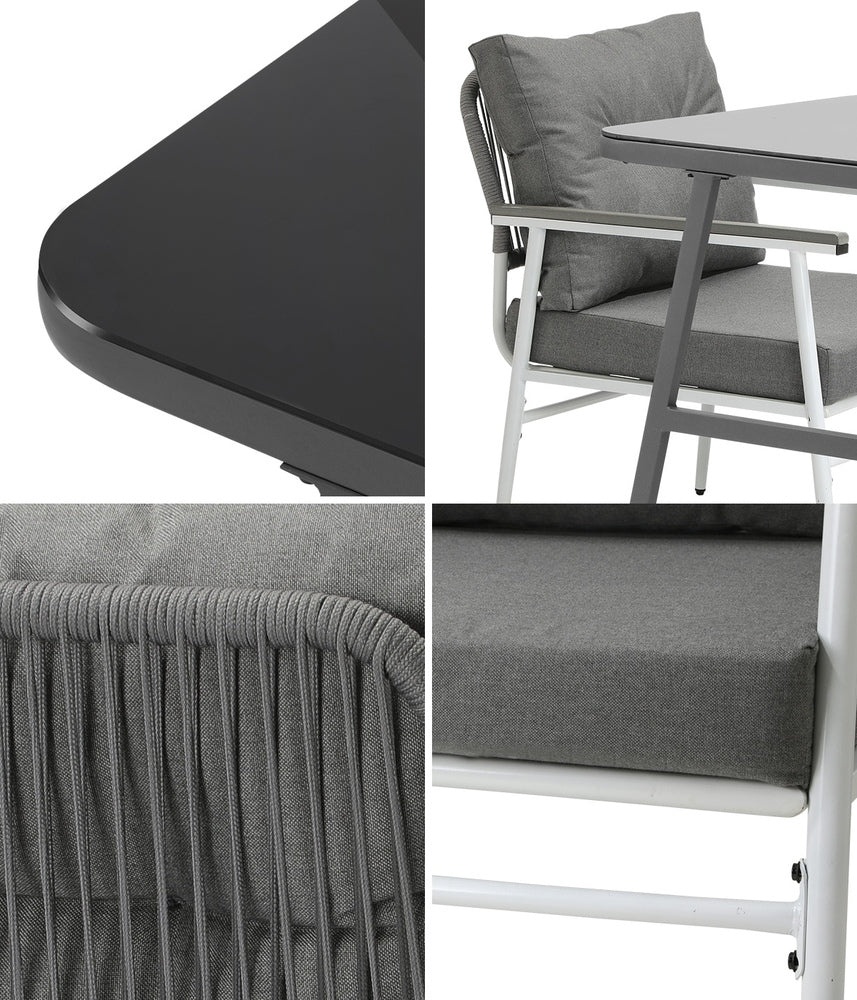 Living life to the fullest. Chilling out under the sun, moon and stars. Alfresco dining with friends, family or just with your precious me-time. Simply pursuing and enjoying life that’s meant to be. And the Livsip Outdoor Dining Set is ready to be there at home with you. Stylish. Contemporary. Beautiful. For the dining table, a gorgeous tempered glass top. And for the dining chairs, equally attractive pieces that go well with the table. The set has all the attributes of chic outdoor furniture that resonate with your discerning lifestyle. Have your lattes, your favourite brews and savour delectable cuisines and other gastronomical delights. Eat, drink and be merry! But how does the dining set stand up to the harsh and sometimes fickle Australian weather? No worries mate as it’s all weather-resistant, chairs and table, with strength and durability for robust use. Not least, this dining setup also looks fabulous with any indoor eclectic styling ideas that you may have. Convinced that this delightful outdoor package is for you? Click on the Buy option and soon you’ll be feasting to your (and many others too) heart’s content at the Livsip Outdoor Dining Set day and night, night and day, in every season.