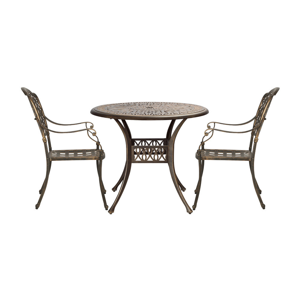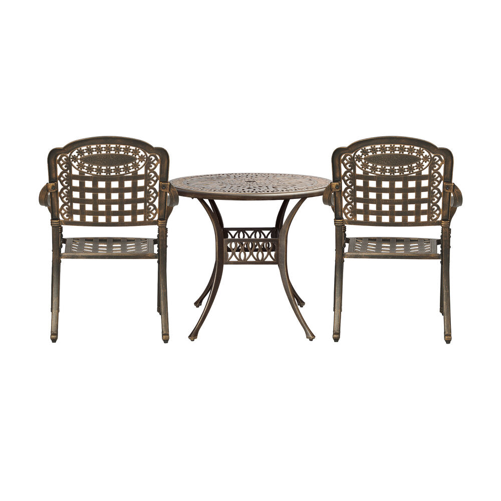 Made from powdered-coated cast aluminium, the bistro set replicates the construction materials of the era perfectly. The flawless smooth finishing and SGS-tested paintwork further add to the immaculate quality with vintage appeal. Naturally, the bistro set is designed to be weatherproof and resistant to corrosion with constant use outdoors. And let's not stop there. You can also use the set indoors to create a unique setting and a definite conversational piece.