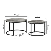 Oikiture Nesting Coffee Table Round Marble Grey & Black