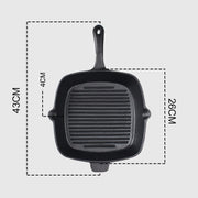 26cm Square Ribbed Cast Iron Grill Pan Preseasoned Induction Ready Handle