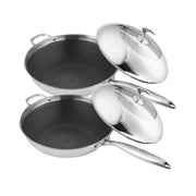 2X 18/10 Stainless Steel 32cm Nonstick Fry Pan Helper Handle Lid Induction Safe
