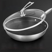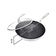 2X 32cm Stainless Steel Tri Ply Fry Pan Textured Non Stick Glass Lid