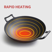 Upgrade your cooking experience with this versatile 36cm cast iron fry pan set. Designed for durability and performance, these pans are perfect for frying, boiling, and more. Note: This product features a non-stick surface. To maintain its quality, avoid using metal utensils, abrasive cleaners, or exposing it to high heat.