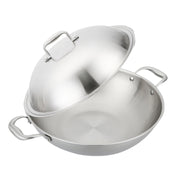 3 Ply 38cm 18/10 Stainless Steel Wok With Lid Double Handle Induction Compatible
