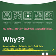 Giorno Felice IH Griddle Pan 34cm Ceramic Non-Stick Camping Korean Stew Round