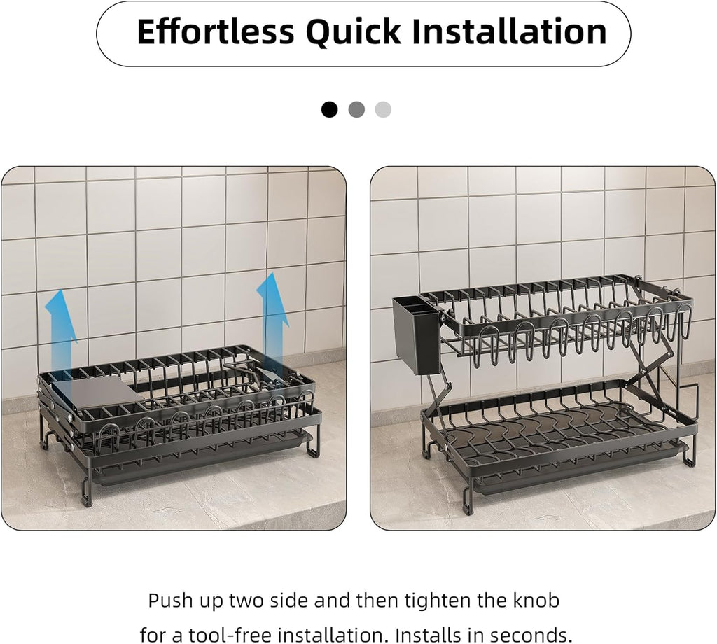 - RUSTPROOF & STURDY BUILD: Constructed from premium carbon steel with a sleek black coating, this dish drying rack resists rust, supports heavy loads, and stays wobble-free thanks to its reinforced triangular frame.
