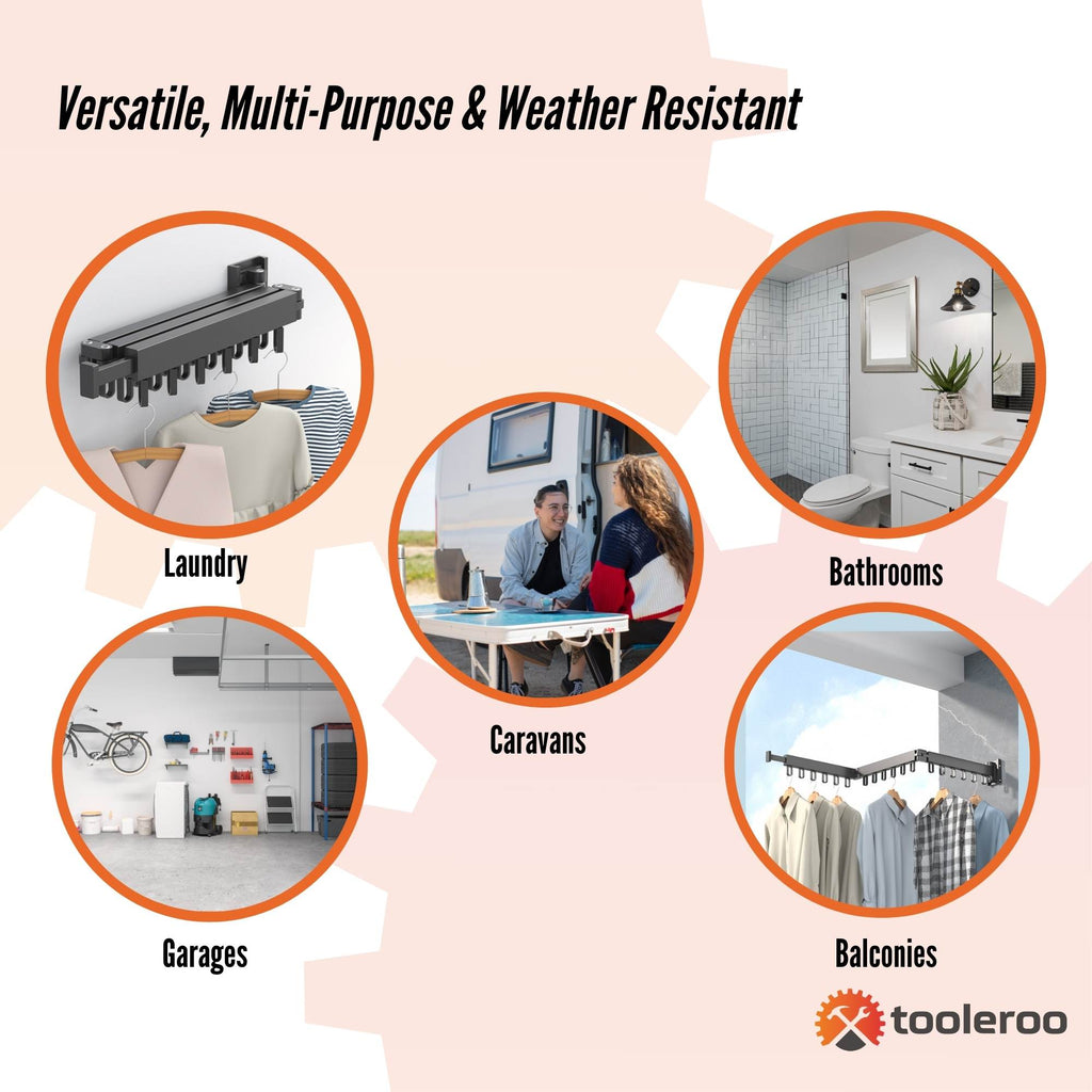 Tooleroo Clothes Drying Rack Tri-Fold Wall-Mount Space-Saving Laundry Hanger
