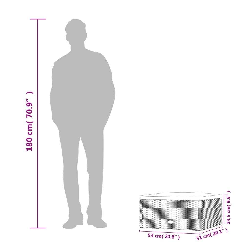 Relax and enjoy your outdoor living space with this garden footstool! Durable material: PE rattan, also known as poly rattan, is weather resistant and easy to clean. It remains beautiful on the outside for a long period of time. It's more economical than other materials, while offering great quality, convenience and an aesthetic look.Stable frame: Steel is an exceptionally hard and strong material. It offers sturdiness and stability. The powder coating on steel creates a protective layer against wear and tear.Modular design: You can purchase other sectional units with the same design and style in our webshop to arrange your own furniture patterns.Comfortable seat experience: With the thickly padded seat cushion, the footstool is highly comfortable. Good to know:To make assembly as easy as possible, each product is delivered with a manual. Note:To make sure your outdoor furniture stays beautiful, we recommend protecting it with a waterproof cover.