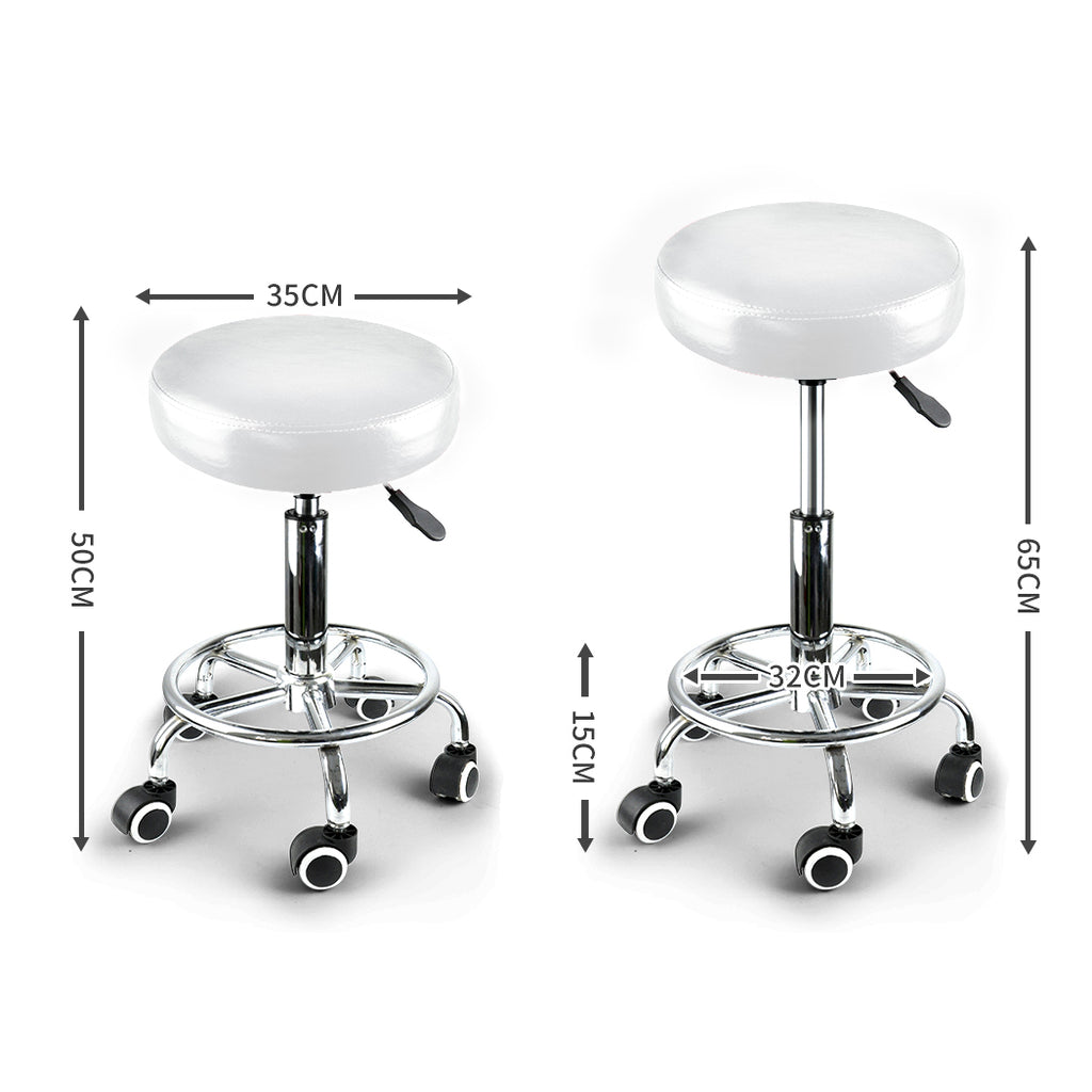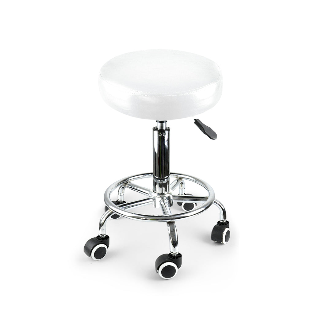 DESCRIPTIONLevede Salon Stool is designed to bring versatility and mobility to your workspace. Featuring with a PU leather seat with high density foam that offers maximum comfort. For best performance in variety of workplace, it comes with 360 o rotation , 5 smooth-rolling casters, and circular footrest. This comfortable stool is easy to clean and the perfect accessory for your office, massage room or spa.