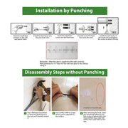 - Installation options include nail-free glue for smooth surfaces.