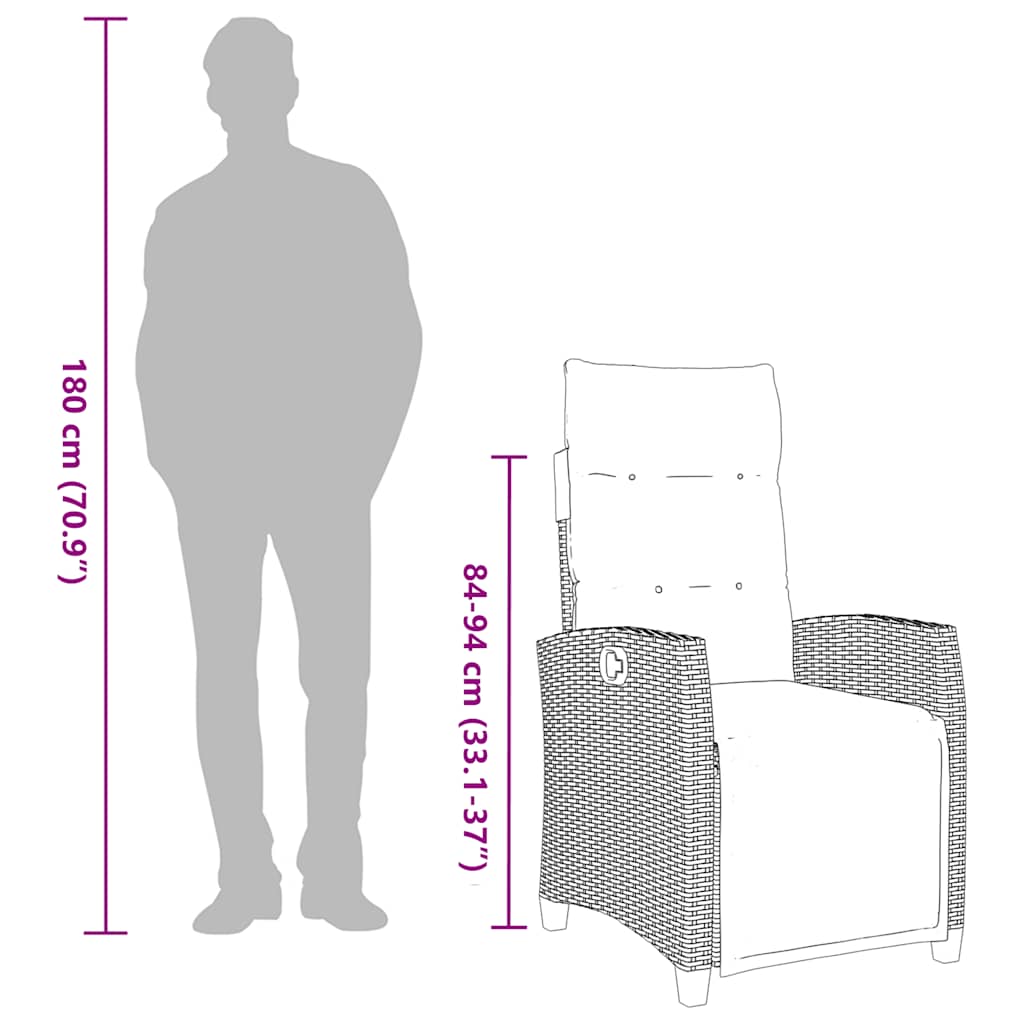 Relax and enjoy the outdoors in this comfortable reclining garden chair! Durable material: PE rattan, also known as poly rattan, is a strong, low-maintenance synthetic material that looks like natural rattan. It's lightweight, easy to clean, and commonly used for outdoor furniture due to its durability and weather-resistant properties.Adjustable backrest and footrest: This garden seat has a handle. You can adjust the backrest and footrest to any position by pulling the handle, and quickly return them to their original positions.Convenient side table: This outdoor furniture features a foldable side table with a gas spring on the armrest, providing a convenient spot to keep your essentials within easy reach.Comfortable seat experience: This outdoor furniture, complete with thickly padded cushions, offers a comfortable seating experience.Removable and washable cover: The seat cushion features a removable cover for easy washing and maintenance. The back cushion has a flap at the back for easy attachment to the backrest. Good to know:To make sure your outdoor furniture stays beautiful, we recommend protecting it with a waterproof cover.