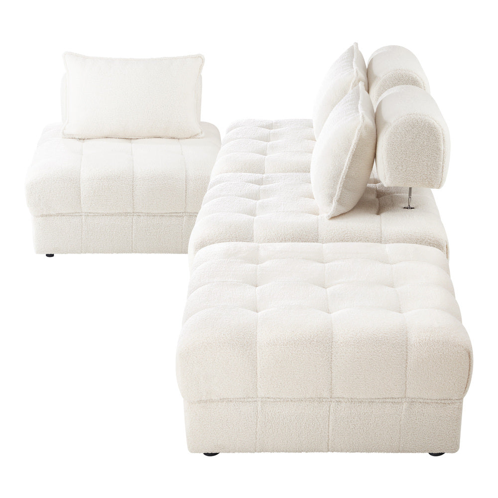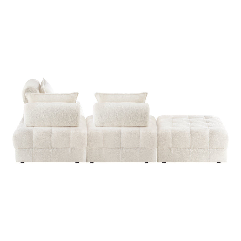 Oikiture 4 Seater Boucle Modular Sofa & Ottoman Set Armless White