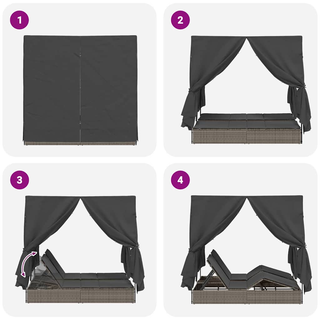 vidaXL Double Sun Lounger with Roof Grey 205 x 129 x 200 cm PE rattan