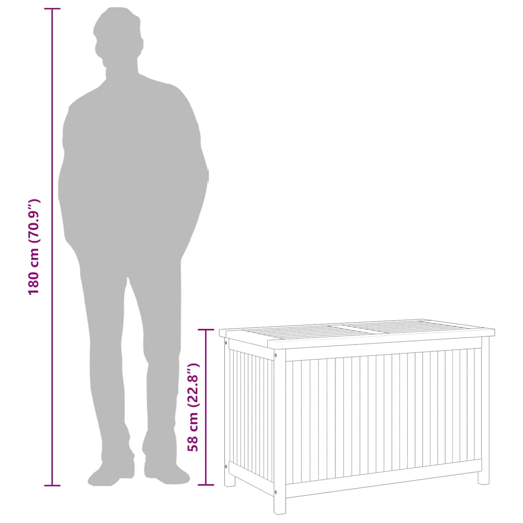 This wooden garden storage box exudes a rustic charm and is meant to be a great addition to your outdoor or indoor living space. Constructed from extremely durable teak hardwood, this piece of teak furniture has been seasoned, kiln-dried, and then fine sanded to give a very smooth appearance. Teak wood is known for its exceptional strength and weather resistance, making it far more suitable for garden furniture than any other kind of wood. Teak wood is the perfect choice if you want to purchase a long-lasting piece of garden furniture. A beautiful finish is applied to give the wood a warm colour. The storage trunk provides ample space for keeping various household or garden items within reach and neatly organised. Additionally, the box has stitched PE bag. Thanks to the water-resistant lining, the contents inside the storage chest will be kept dry. Note: In order to extend the life of your outdoor furniture, we recommend you to protect it with a waterproof cover.