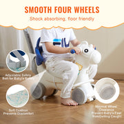 We care about every touch experience for your child. Four durable wheels of the toddler rocking horse ensure smooth and quiet movement, adapting to both indoor and outdoor play. The built-in music feature captures your baby's attention, while the safety gap design of the wheels prevents little hands and feet from getting pinched, showing our deep care for your child's development in every detail.