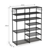 2X 12 Shelf Shoe Rack 3kg Capacity Plastic Coated Iron 87x30x105cm Black