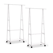 2X 2 In 1 Garment Rack Plastic Coated Iron Pipe 55x42x160cm 12kg White Wheels