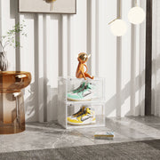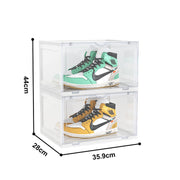 2X 2 Tier Transparent Plastic Shoe Organizer Stackable Ventilated Magnetic Door