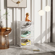 2X 3 Tier Clear Plastic Shoe Organizer 35.9x28x66cm Stackable Magnetic Door