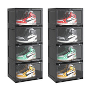 2X 4 Tier Plastic Shoe Organizer 35.9x28x88cm Stackable Magnetic Door Black