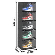 2X 5 Tier Black Plastic Shoe Organizer Stackable Transparent Front Magnetic Door