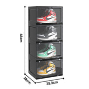 4 Tier Plastic Shoe Organizer 35.9x28x88cm Transparent Magnetic Door Black