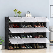 6 Tier 3 Column Shoe Rack Organizer Plastic Panels Stackable 85x32x95cm Black