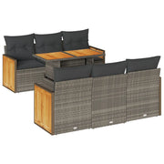 7 Piece Garden Sofa Set with Cushions Grey Poly Rattan Acacia