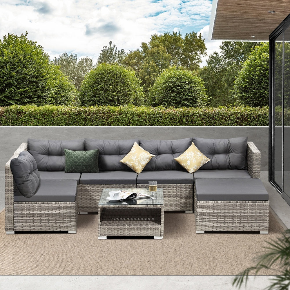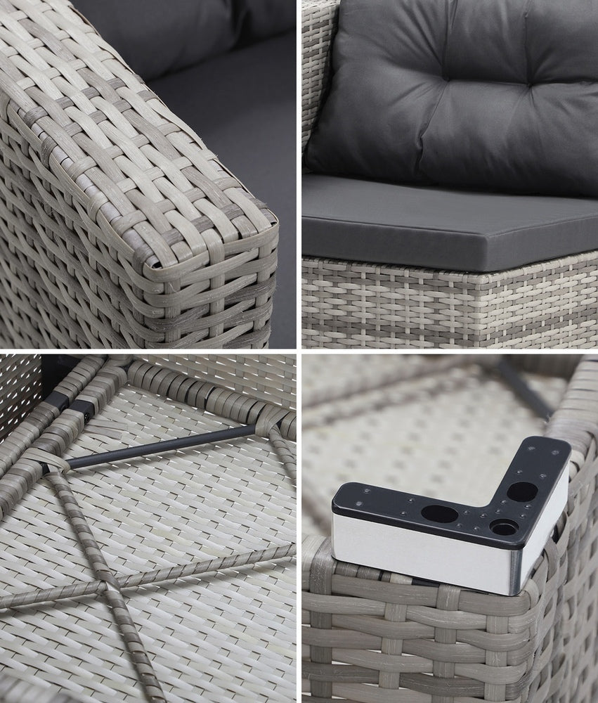 Crafted with meticulous attention to detail, our outdoor sofa set features steel frame and PE wicker that are built to withstand the elements. The sturdy frame and weather-resistant upholstery ensure durability and long-lasting performance, allowing you to enjoy years of outdoor lounging in style.