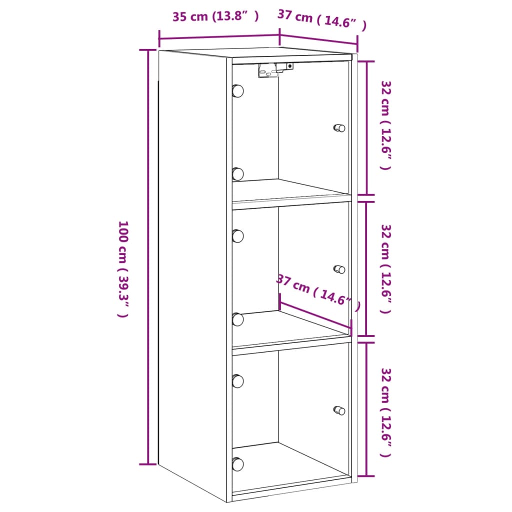This wall cabinet is stunning and elegant. Not only is it an excellent solution for your chores and decorations, but it is also the perfect decoration for your empty walls and turns them into designer walls. Durable material: The engineered wood is of exceptional quality with smooth surface and also features strength, stability and resistance to moisture.Ample storage space: The hanging cabinet boasts compartments, enabling you to place items such as books, and keep them neatly organised and within reach.Versatile design: You can mount the storage cabinet on the workplace wall for convenient storage of tools or other miscellaneous items. Also, it transforms an empty wall into a design feature.Wall-mounted function: The storage cabinet can be wall-mounted to add extra storage space. That way, you can maximise your floor space and keep the area clean.Practical glass doors: Keep your space clutter-free by hiding small essentials behind the doors of the wall unit. In addition, the glass doors allow you to see inside the floating cabinet to display items beautifully. Good to know:Screws and plugs for inside the wall are not included. We advise to find and use screws and plugs suitable specifically for your walls. If you're not sure, you can consult with a professional. Please read and follow each step of the instructions.