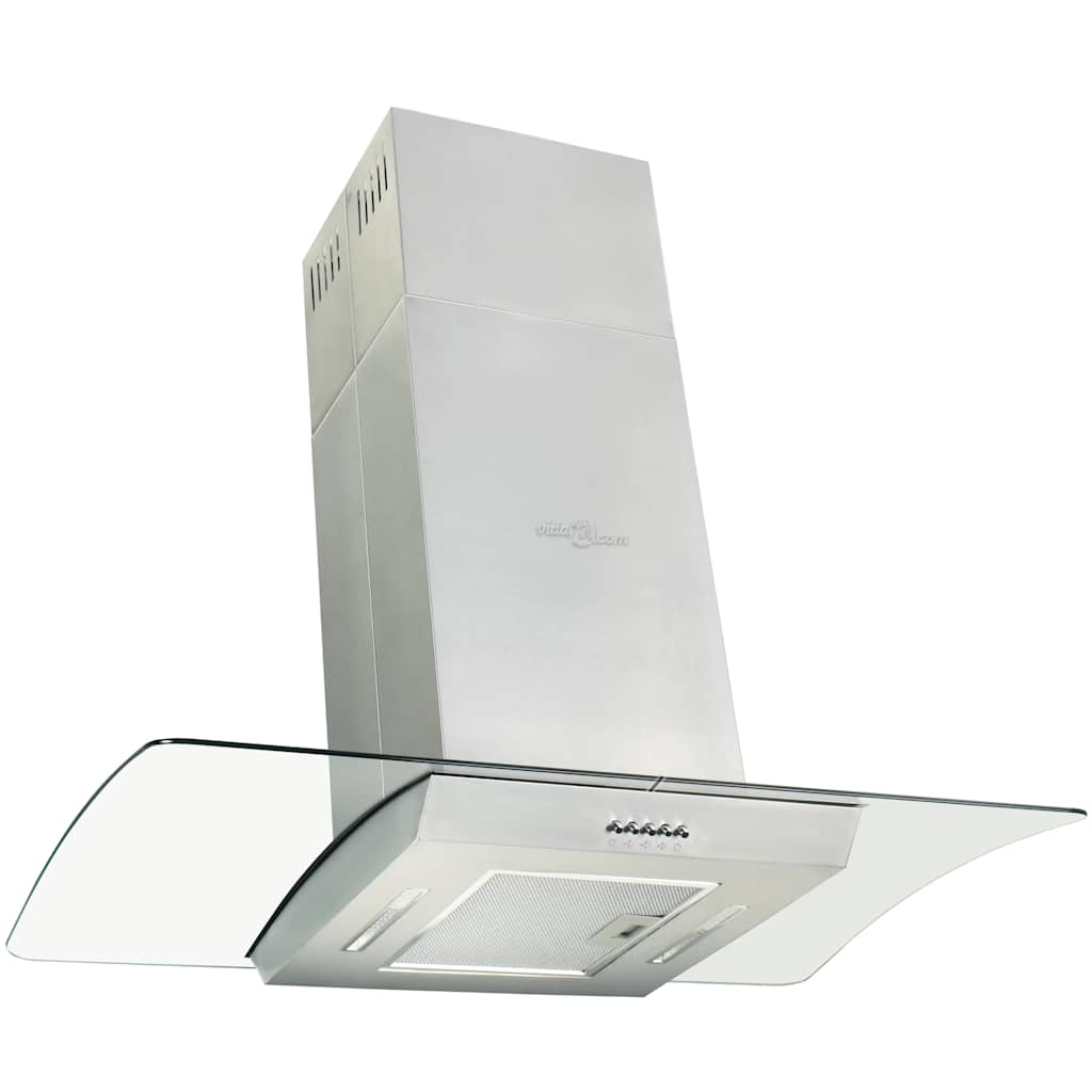 Our low-noise and powerful island range hood is ideal for effectively extracting smoke, grease, moisture and even heat from your kitchen. Its stainless steel housing is combined with a sleek, curved tempered glass canopy, giving your kitchen a stylish and modern look. This chimney hood is equipped with a 3-layer washable aluminium grease filter to protect the inside of the extractor hood and the exhaust pipe from grease. The built-in LED lights provide excellent illumination, to help with cooking and also to create a nice ambience in your kitchen. The extractor hood has 3 variable speeds to ensure you have a full control over the extraction rate and a charcoal filter that will help purify the air and release the cleaned air back into the kitchen, whilst external extraction transfers cooking odours to outside with the help of the included exhaust pipe. Assembly is easy. The island hood fits well in an open kitchen with a cooking island as a standalone hood, but can also be used if you do not have a cooking island.