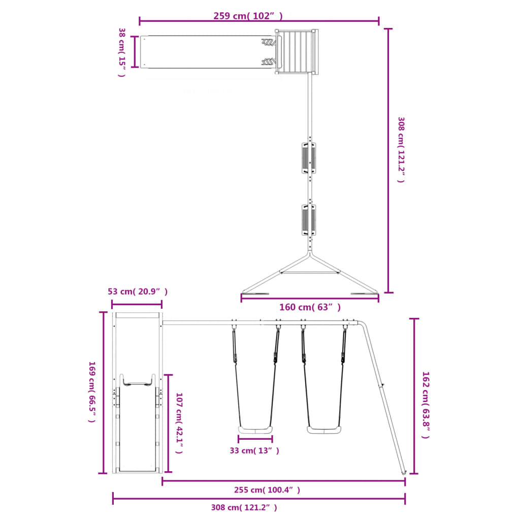 Do you want to give your children the freedom to play at home? This wooden outdoor playset transforms your backyard into a playground for imaginative adventures! Durable material: This garden climbing frame is made of solid pine wood. Solid pine wood is a beautiful natural material. Pine wood has a straight grain, and the knots give the material its signature, rustic look.Sturdy and stable frame: The wooden frame of the garden play frame ensures sturdiness and stability.Multi-activity centres: The climbing frame features a 90 cm height platform and stands out with its double swing set, wave slide, and sandpit. Your little ones can also invite their friends to join the fun.Thoughtful design: The surrounding wooden railings are designed to ensure the safety of children during their happy play.Endless fun: This fun-filled wooden outdoor playhouse is the perfect way for your children and their friends to enjoy entertainment, have more interactive time and make memories for you and your children! Warning:Only for domestic useOutdoor useNot suitable for children under 3 yearsRecommend user age: 3-8 years old Good to know:To make assembly as easy as possible, each product is delivered with a manual.