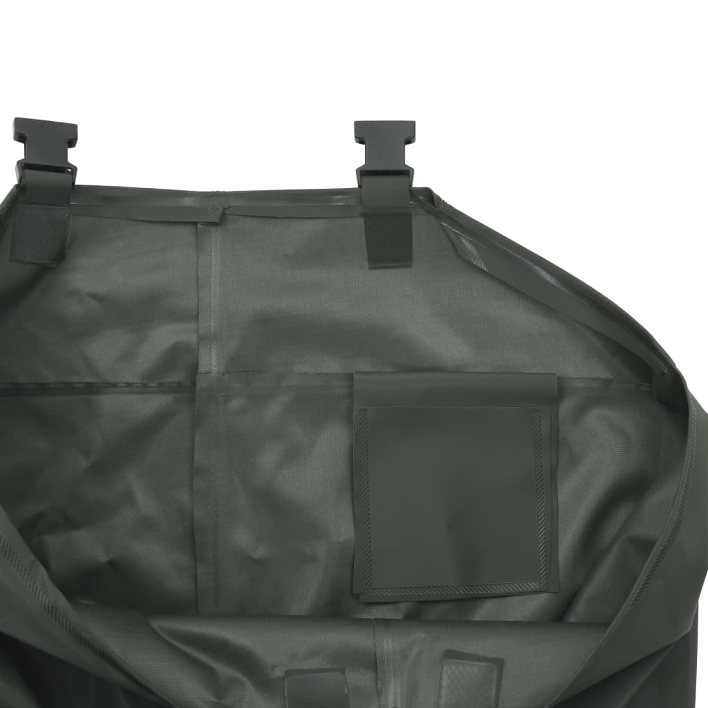 Stay dry while fishing with our chest wader pants. This exceptional coated polyester fabric is cozy and pliable inside, and simultaneously robust outside. Thanks to its stitched and sealed seams, as well as the attached boots, our wading pants are 100% waterproof. Additionally, the shoulder straps enable you to make the fishing pant fit perfectly without a hitch. Note: For perfect fit, please check size chart carefully before buying. If your Feet are Wide or you need to wear Thick Socks, please Choose ONE SIZE LARGER than usual.