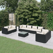 vidaXL 9 Piece Garden Lounge Set with Cushions Poly Rattan Black