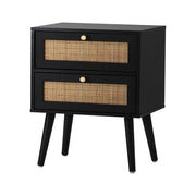 Oikiture Bedside Table 2 Drawers Storage Cabinet Rattan