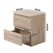 Oikiture Bedside Table Nightstand 2 Drawers Natural